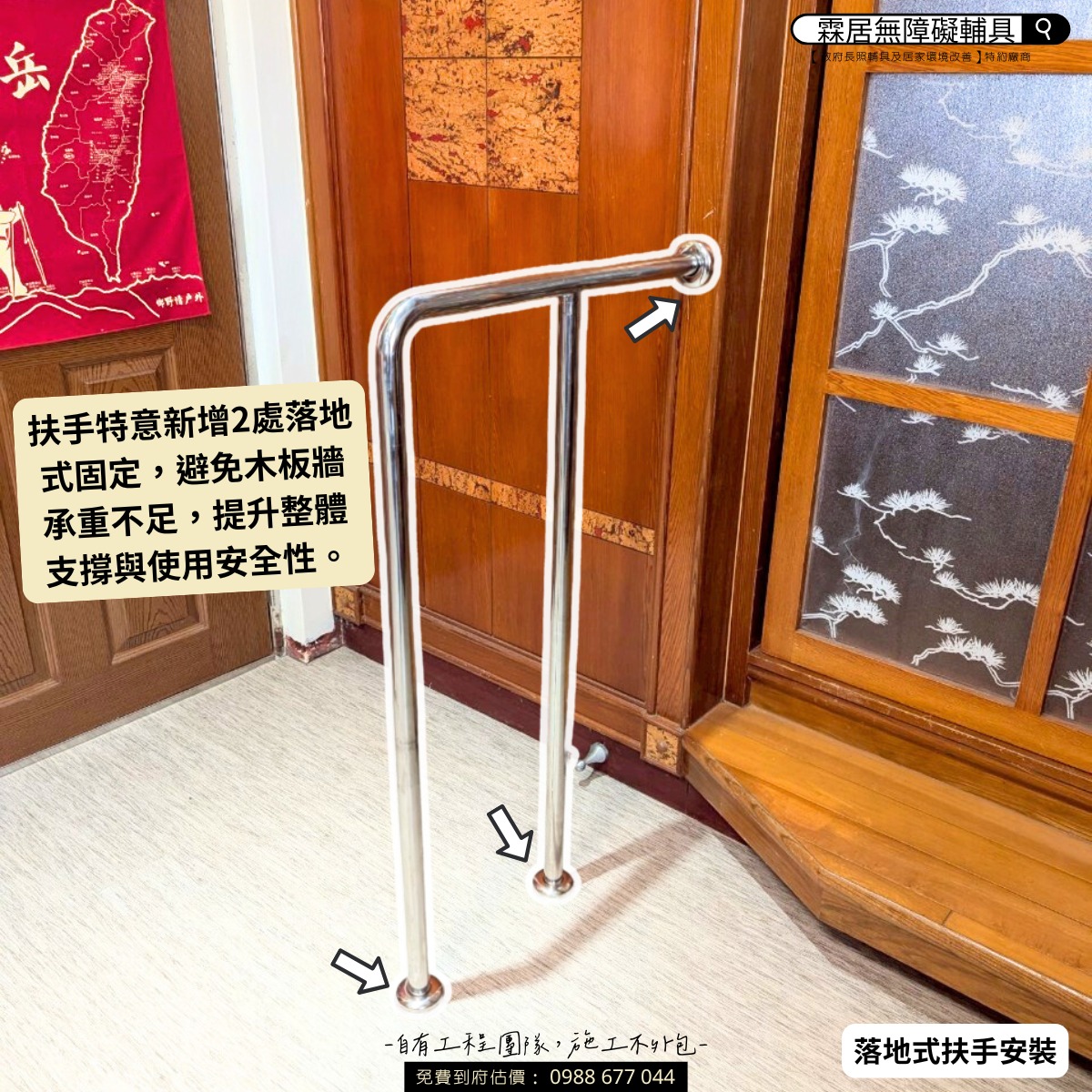 透過在門口台階加裝 #落地式 扶手  進行改善,可以讓長輩進出房間時多一份支撐,不因誤判步數而失足,走得更穩,也更安心 yes